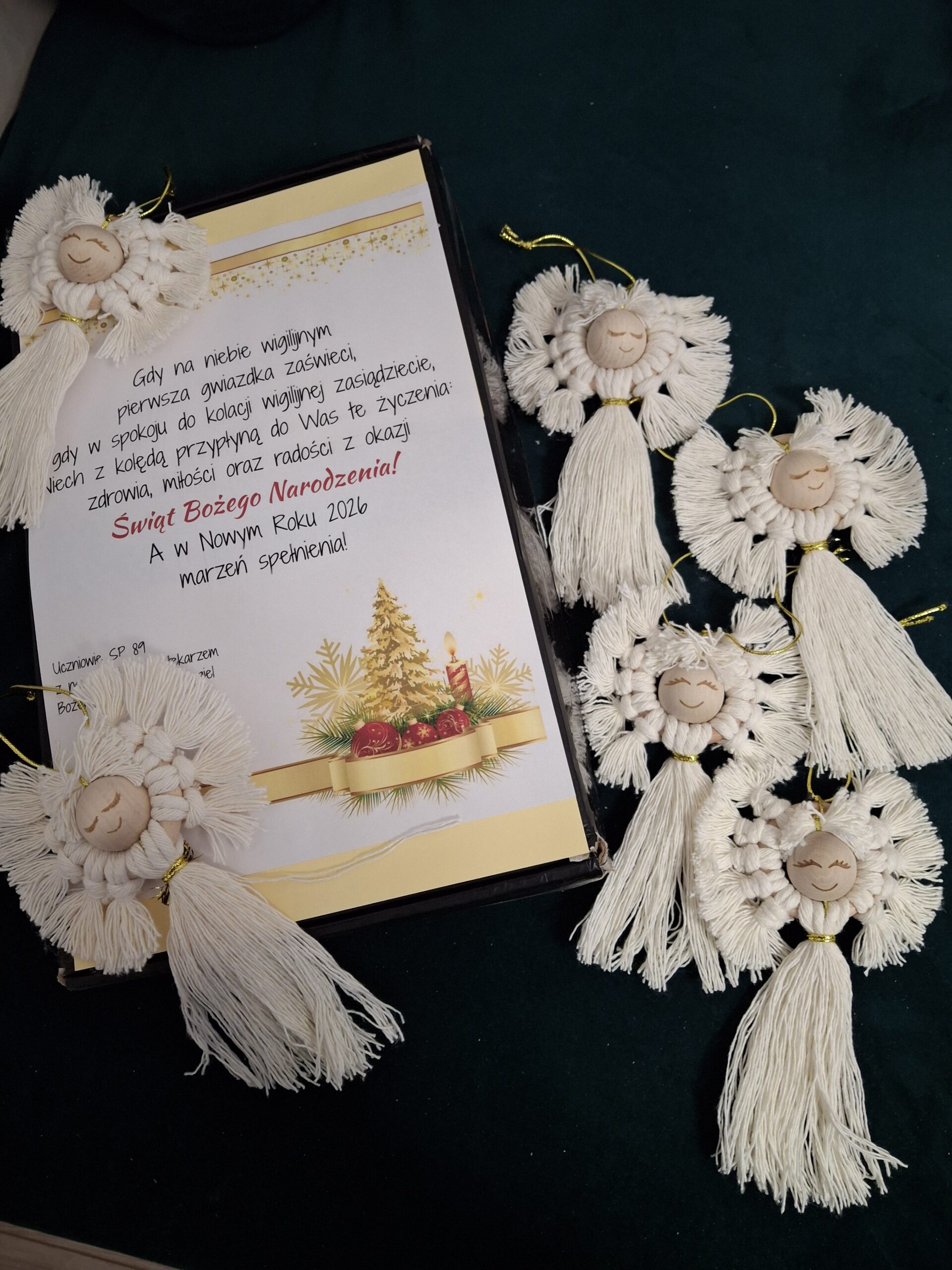 Uczennice z klas 2, 3 i 5, pod kierunkiem nauczyciela bibliotekarza, przygotowały wyjątkowe aniołki wykonane techniką makramy, które zostały podarowane Seniorom. Te drobne, ale pełne serca upominki przez całe święta będą przypominać obdarowanym o tym, że ktoś o nich pamięta i życzy im dobra.