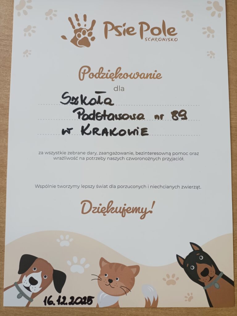 Dzięki ogromnemu zaangażowaniu uczniów, rodziców i nauczycieli udało się zgromadzić naprawdę dużo potrzebnych rzeczy – karmę, koce, zabawki i inne akcesoria. Wszystkie te dary pomogą zwierzakom przetrwać najtrudniejszy jesienno-zimowy czas i sprawią, że ich codzienność stanie się choć odrobinę łatwiejsza i bardziej radosna. Każdy podarowany przedmiot to gest dobroci, który daje zwierzętom nadzieję i poczucie, że nie są same. 💕