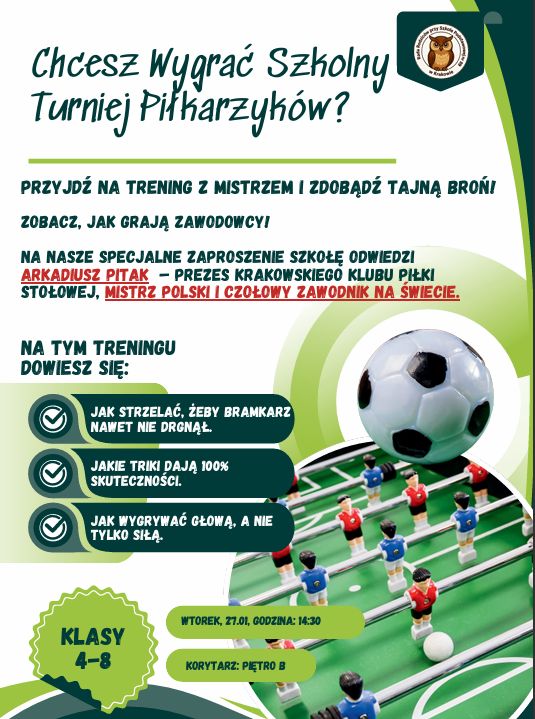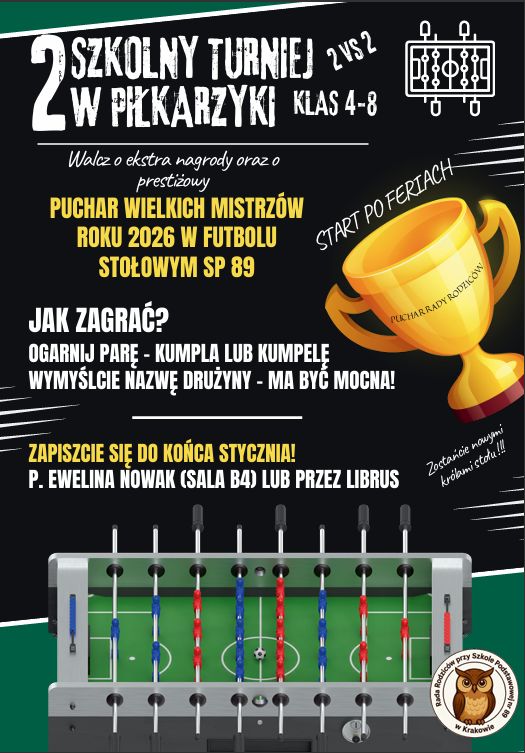 Wraz z Radą Rodziców rozpoczynamy zapisy drużyn do Szkolnego Turnieju w Piłkarzyki.