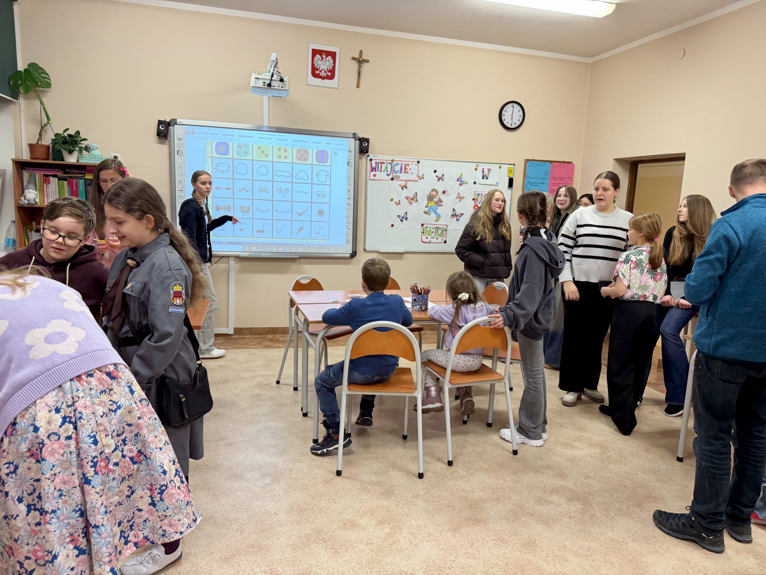 Już od progu nasi goście mogli poczuć atmosferę inspirowaną światem bajek i niezwykłej wyobraźni. Korytarze zamieniły się w krainę pełną kolorów, uśmiechu oraz dobrej energii, a uczniowie wraz z nauczycielami zrobili wszystko, by przyszli uczniowie klas pierwszych poczuli się wyjątkowo, swobodnie i już od pierwszych chwil przekonali się, że właśnie tutaj zaczyna się ich piękna szkolna przygoda.