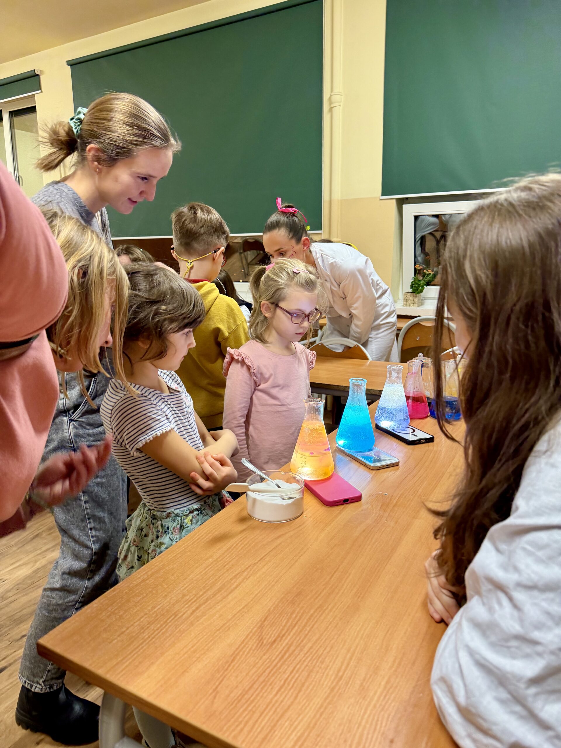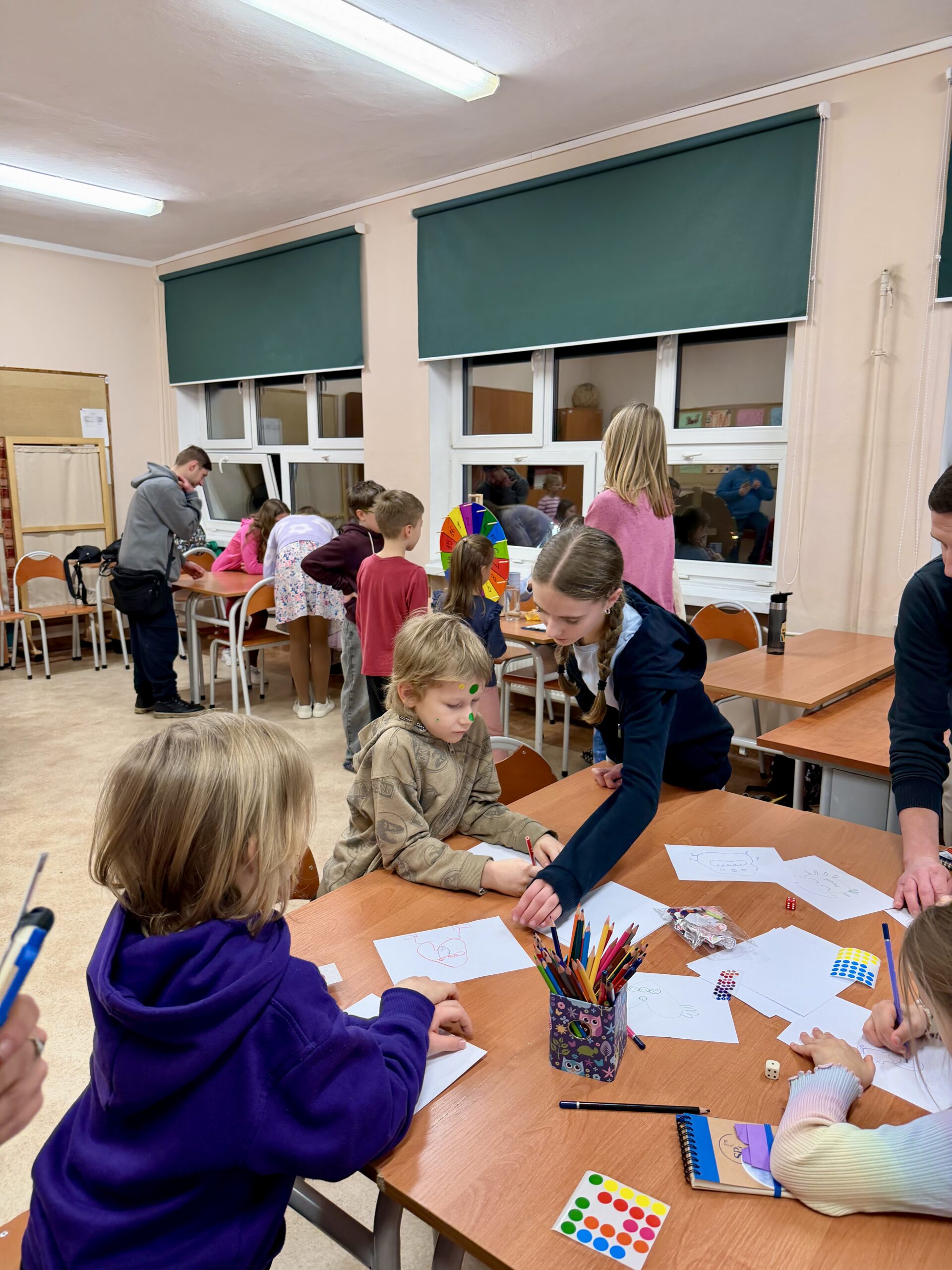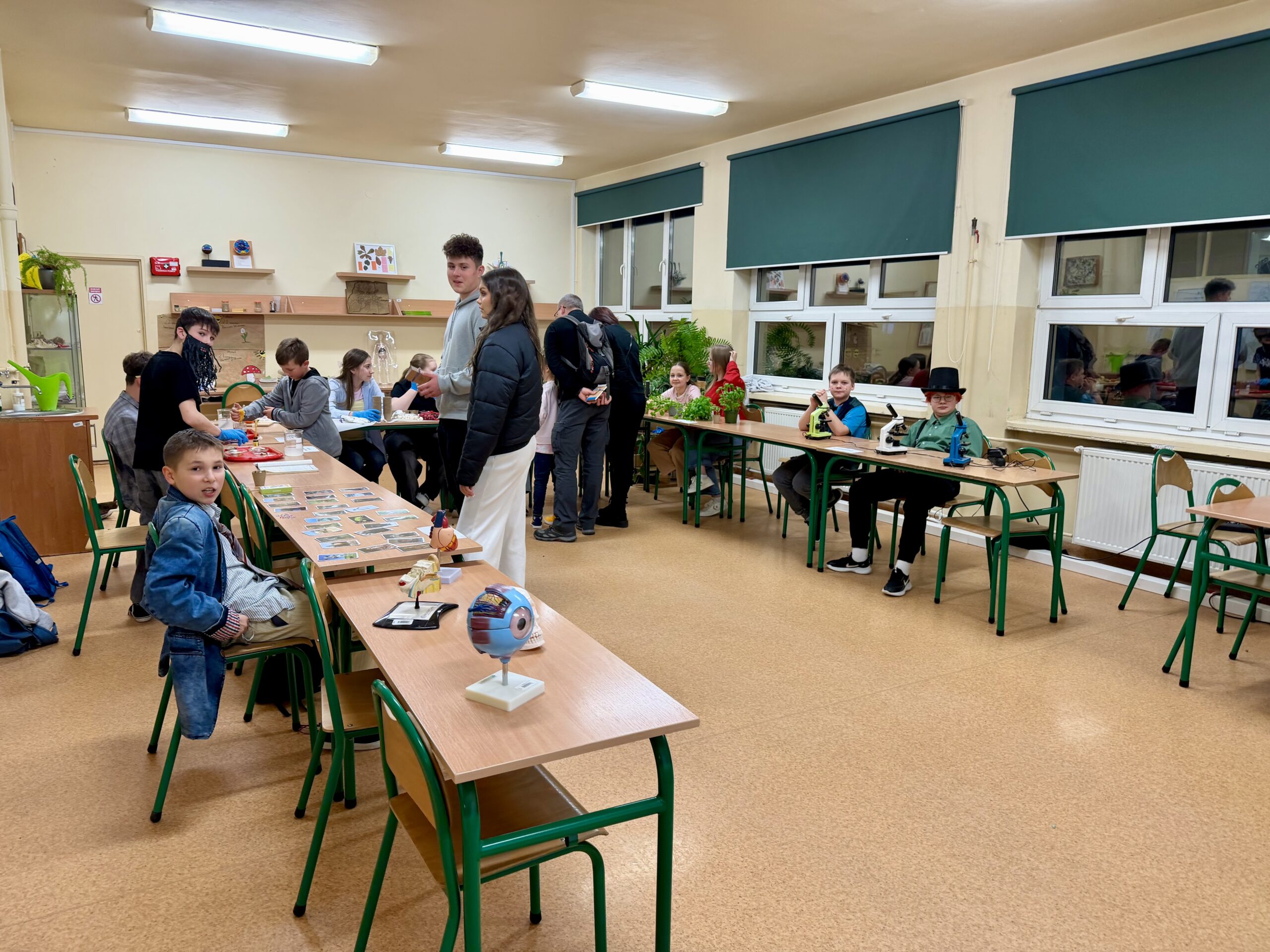 Na odwiedzających czekało mnóstwo atrakcji: guzikowa zabawa z kostką, gry i quizy, pierwsze kroki w programowaniu, pierwsze słowa po hiszpańsku, wystawa okazów skał, minerałów, eliksiry pana Kleksa, obserwacje mikroskopowe, hodowle roślin, fabryka bajek z kostkami opowieści, JU JITSU, spotkanie z Dyrekcją szkoły.