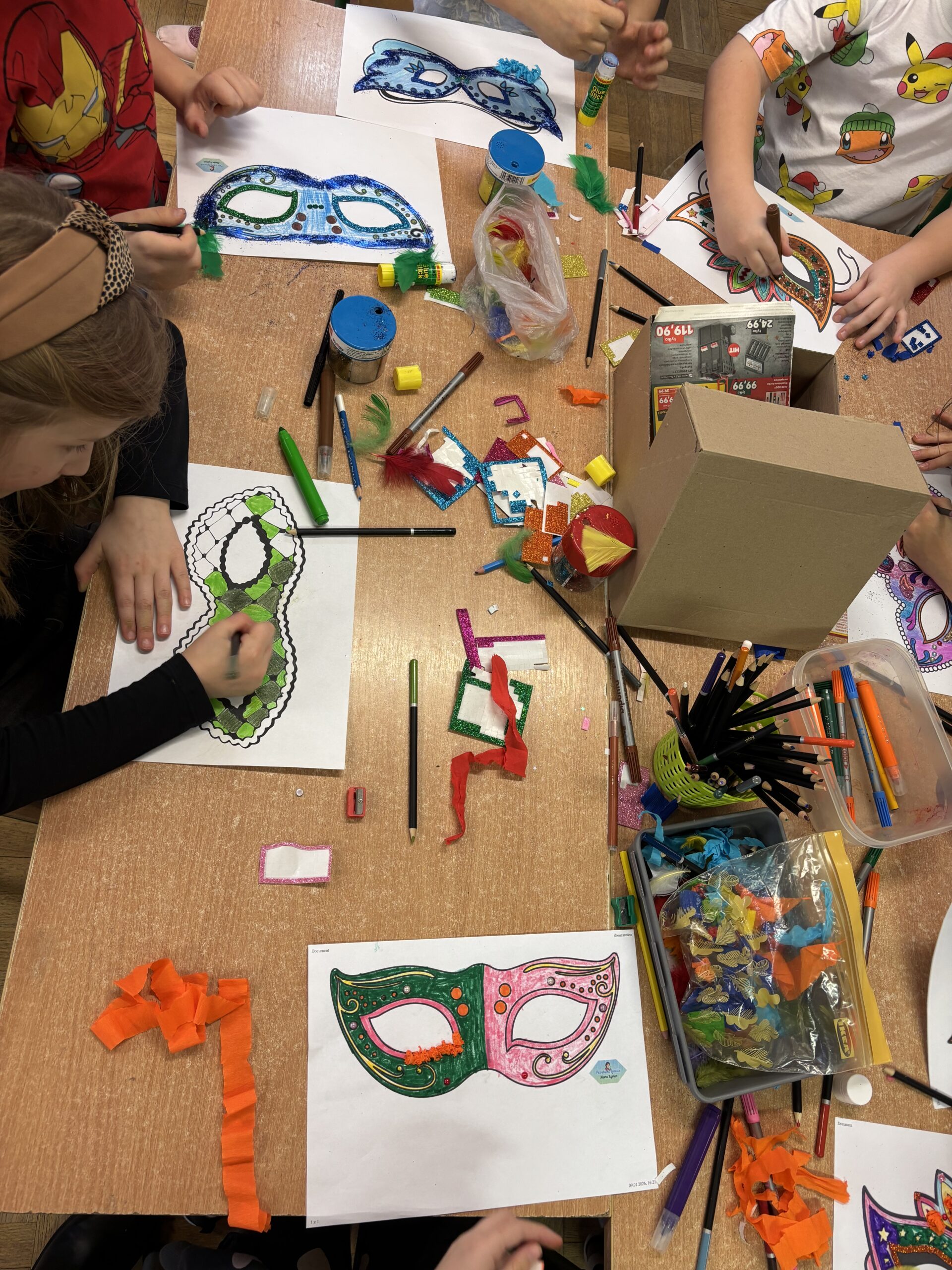 Zgodnie z tradycją „W karnawale, w karnawale… wielkie bale” w naszej świetlicy odbyła się namiastka karnawału… Podczas zajęć plastycznych w świetlicy szkolnej klas pierwszych i 2a wykonane zostały maski różnymi technikami – według upodobań uczniów.