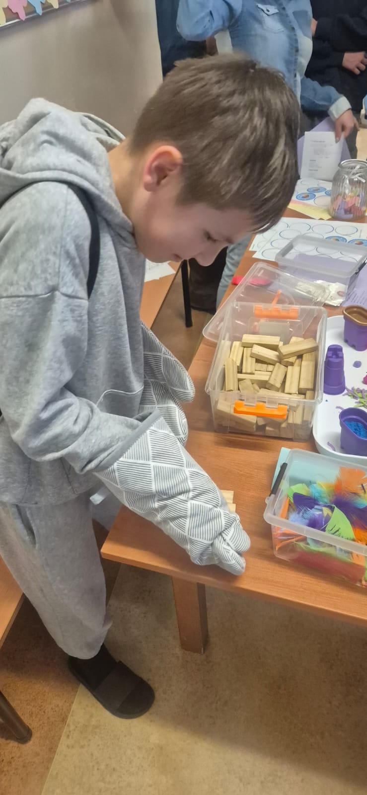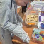 Dodatkową atrakcją było zadanie polegające na budowaniu konstrukcji z klocków drewnianych w rękawicach kucharskich. To utrudnienie pokazało, jak wyzwania sensoryczne mogą wpływać na codzienne czynności i wymagać większego skupienia oraz cierpliwości.